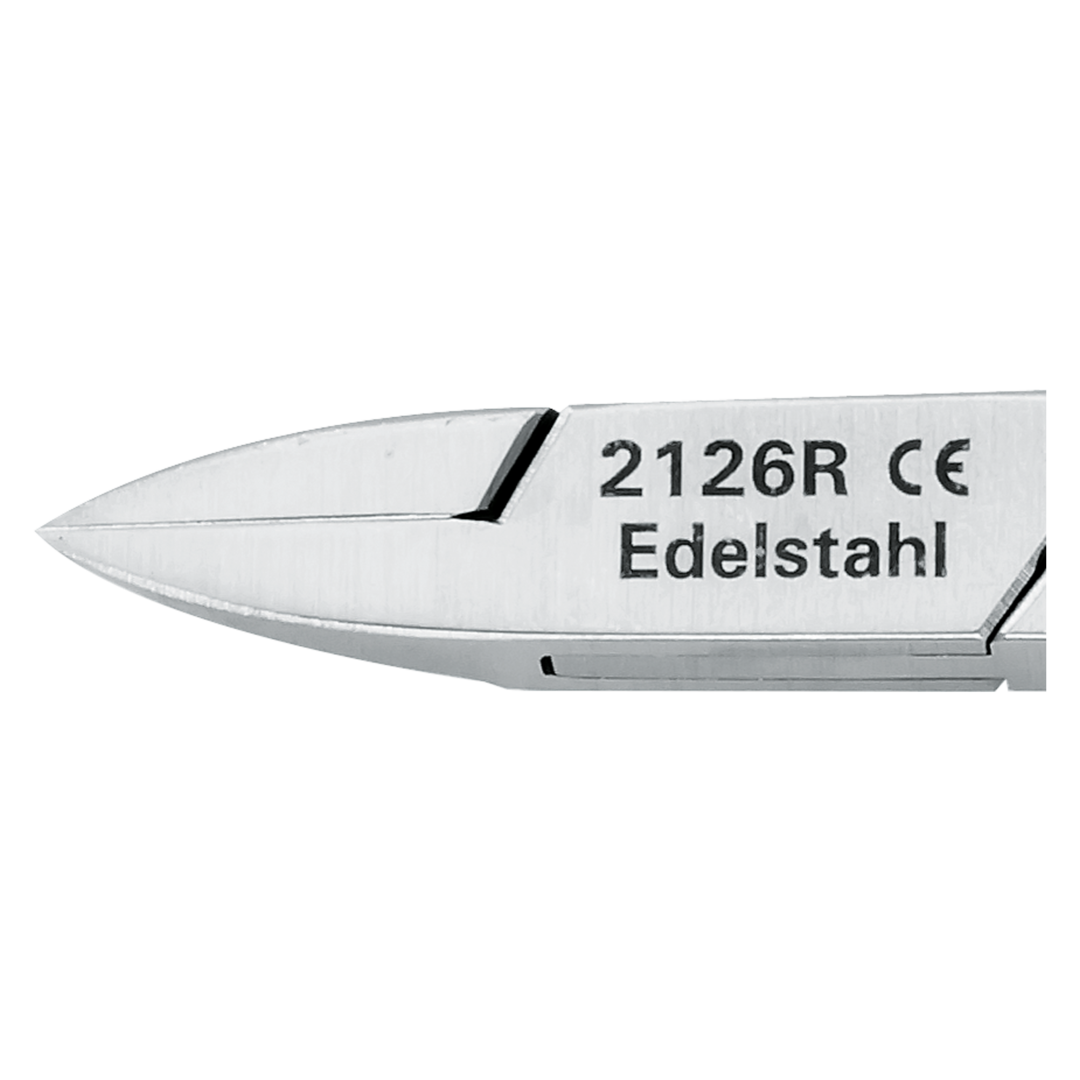 Description For cutting the sides and the free distal edges of the nails and thin soft nail plates. For removal of the ingrown part of the nail (Unguis incarnatus) in the nail fold or for the removal of hard skin and calluses. 13 cm, straight cutting edge 17 mm